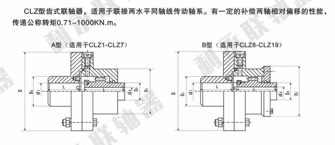 CLZ型齒式聯(lián)軸器特別適用于低速重載工況,如冶金、礦山、起重運(yùn)輸?shù)刃?業(yè)、也適用于石油、化工、通用機(jī)械等各類機(jī)械的軸系傳動。